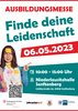 Ausbildungsmesse "FINDE DEINE LEIDENSCHAFT" am 06.05.2023 von 10:00 bis 15:00 Uhr in der Niederlausitzhalle Senftenberg.